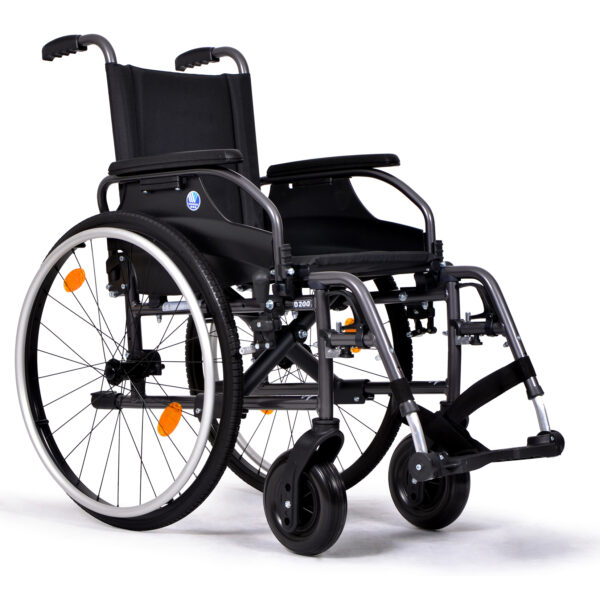 Wózek Vermeiren D200 zaprojektowano z wielką dbałością o potrzeby użytkowników. Optymalna ilość parametrów przekłada się na jego funkcjonalność, a jednocześnie pozwala zachować wysoki poziom komfortu. Wózek wykonany został z aluminium, przez to jest lekki, a przy tym niezwykle wytrzymały. Wyposażono go w koła tylne wypinane na szybkozłączki, wyciągane podnóżki oraz odchylane podłokietniki. Wszystko to sprzyja transportowi, gdyż pozwala na zmniejszenie gabarytów po złożeniu. D200 jest najlżejszym wózkiem w swojej klasie, jego waga zaczyna się już od 14,3 kg, a nowoczesny wygląd jest jego kolejnym atutem.Cechy produktu:koła tylne w bloku aluminiowym na szybkozłączce z odblaskamiregulacja wysokości siedziska od podłożaregulacja kąta płyty podnóżkawykonany z aluminium - odporny na korozjęściąganie podnóżki, odchylane na zewnątrz i do wewnątrzodchylane oparcie oraz wyciągane podłokietnikiregulacja wysokości i głębokości podparcia pod łokiećmożliwość zmiany środka ciężkości dla osób po amputacji kończynwaga wózka od 14,3 kgogumienie bezdętkowe - opony Krypton