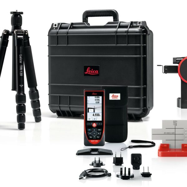 Dalmierz współrzędnościowy Leica Disto S910 wygodnie obsługuje się za pomocą dotykowego ekranu. Wbudowana kamera cyfrowa służy do dokładnego celowania w punkty pomiarowe i wykonywania zdjęć mierzonym obiektom. Najefektywniejsze pomiary Disto S910 prowadzi się w zestawie ze specjalnym adapterem kątowym FTA 360-S ze śrubami do łatwego wyboru celu i statywem fotograficznym TRI 120. Cały taki komplet dostarczany jest w solidnej walizce transportowej.