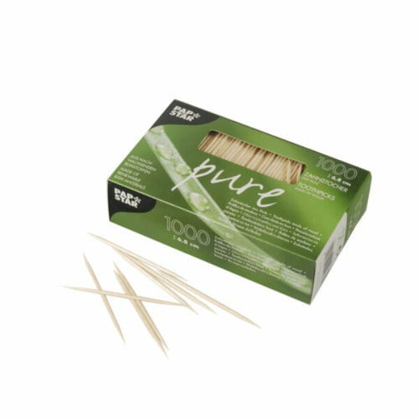Wykałaczki drewniane, "pure" Nr artykułu: 12735 Marka: PapStar Kolor: naturalny Forma: okrągłe Materiał: drewno Długość: 6,8 cm Opakowanie: 1000 szt.
