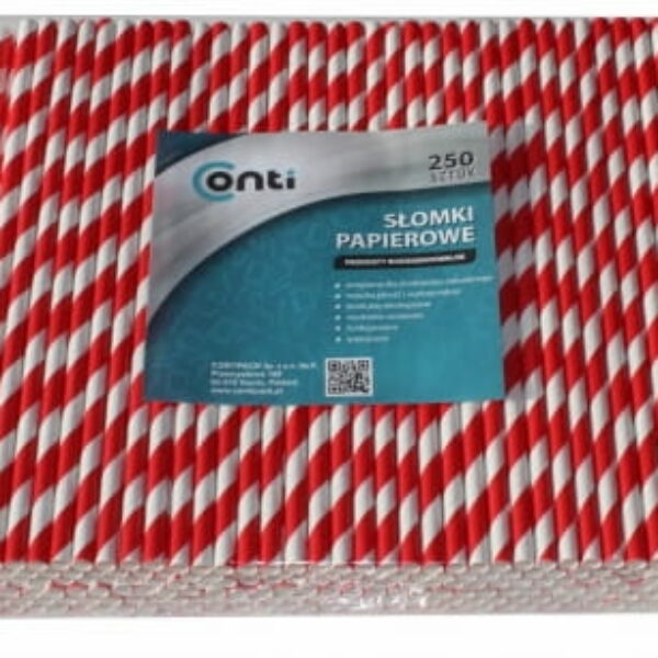 Słomka z papieru w paski czerwona 6 x 197 mm 250 szt
