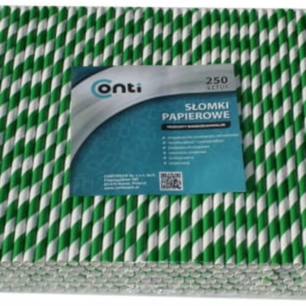 Słomka z papieru w paski zielona 6 x 197 mm 250 szt