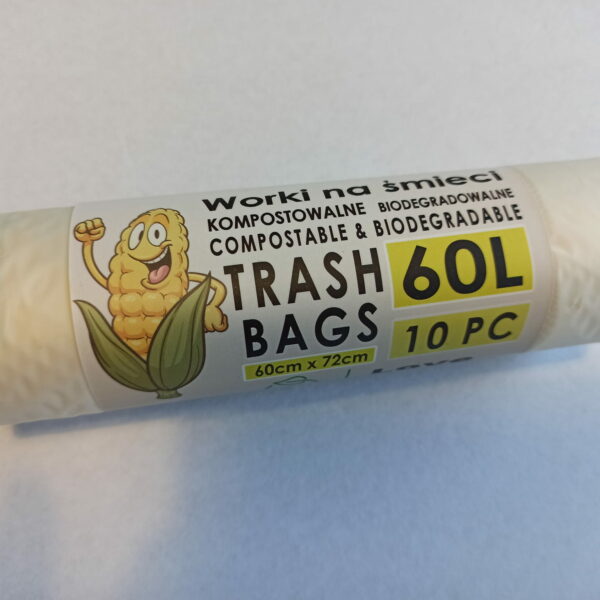 Kompostowalne worki na śmieci ekologiczne, biodegradalne wielkość: 60l 10 szt w opakowaniu 60 cm x 72 cm