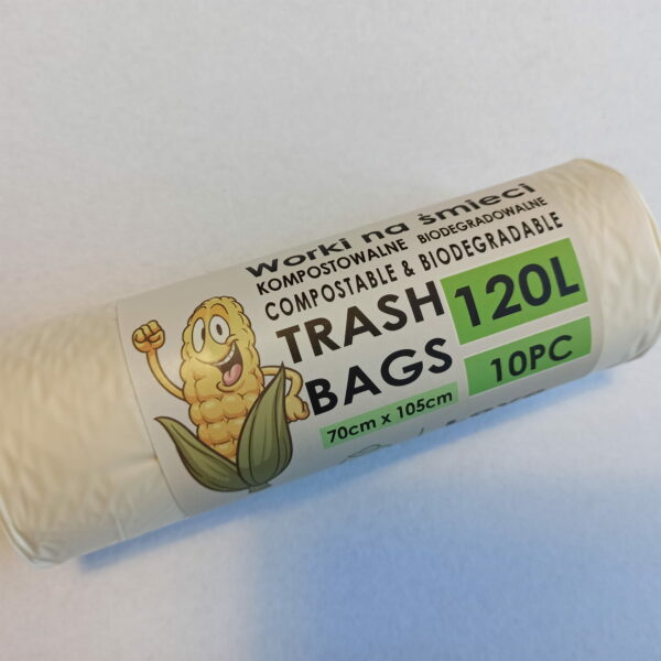 Kompostowalne worki na śmieci ekologiczne, biodegradalne wielkość: 120l 10 szt w opakowaniu 70 cm x 105 cm