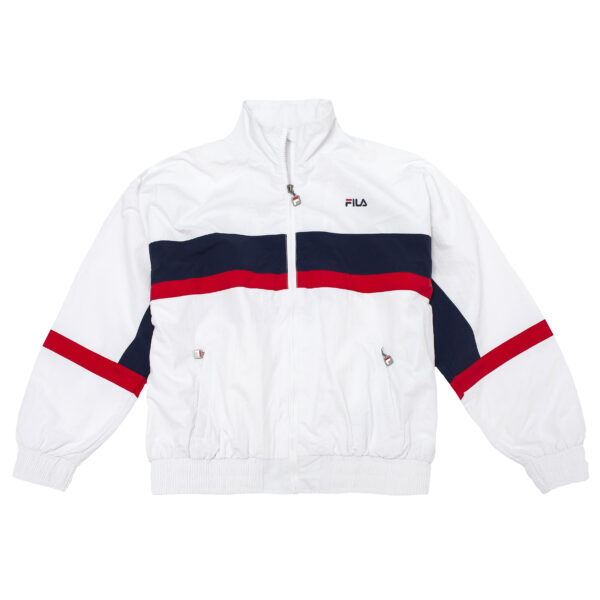 Kurtka damska Fila Kaya Wind Jacket.Mocno inspirowana sportowym retro, lekka kurtka Fila. Na plecach oraz piersi logotyp marki. Na bokach praktyczne kieszenie.