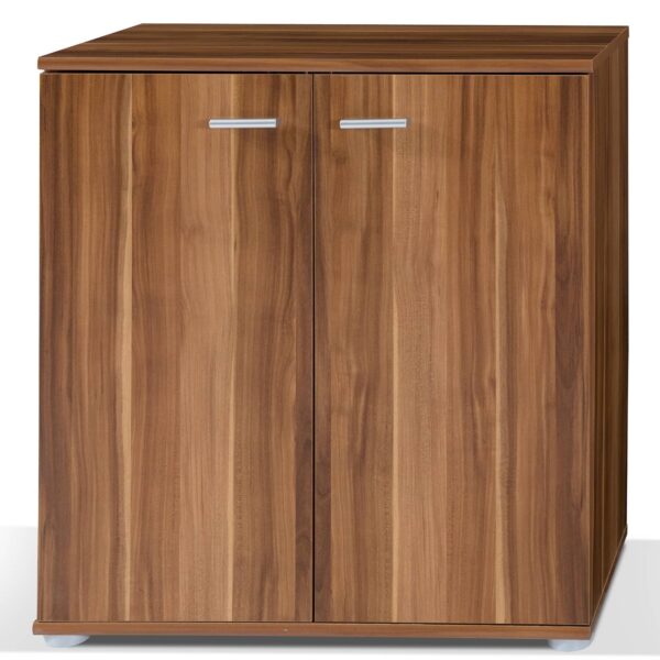 Komoda – przyjaciel ładu i porządku Komoda to obowiązkowe wyposażenie każdego domu lub mieszkania. Komoda z dobrze rozmieszczonymi półkami lub szufladami pozwoli zachować porządek w każdym pomieszczeniu. Komoda do salonu pozwoli przechować domową filmotekę, kolekcje płyt czy też części garderoby. Komoda znajdzie swoje miejsce również w sypialni, pokoju młodzieżowym czy też przedpokoju. Na blacie mebla możesz umieścić wszystko to co chcesz wyeksponować np. cenne pamiątki lub zdjęcia bliskich. Komoda Mike cechuje się prostym i nowoczesnym designem, który pozwoli Ci bez problemu wpasować ją do każdej stylistyki. Cechy produktu: Pojemna szafką dwudrzwiowa Praktyczny blat Nowoczesny design Wykonany z grubej i sztywnej laminowanej płyty z okleiną PCV Odporny na wysokie temperatury i zadrapania Nowoczesny Design dzięki któremu mebel będzie idealnie pasował do większości pomieszczeń Eleganckie uchwyty Odporny na zalania i zarysowania Komoda została wykonana z grubych płyt laminowanych, które charakteryzują się znacznie większą gęstością i wytrzymałością niż tradycyjna płyta wiórowa. Mocna laminowana powłoka oraz obrzeża wykończone tworzywem PCV sprawiają, że produkt jest dużo bardziej odporny na zalania i zarysowania. Często tańsze meble z płyty wiórowej pęcznieją i odkształcają się po kontakcie z wilgocią, nawet tą unoszącą się w powietrzu! Krótki kontakt z wilgocią nie niszczy naszej komody! Szeroka gama dla każdego stylu Dobrze wybrany kolor pozwoli zaakcentować styl pomieszczenia. Biała komoda sprawdzi się w stylu skandynawskim, a także modernistycznym. Ciepłe kolory buk oraz dąb sonoma sprawdzą się w stylu z Prowansji, a kolor śliwy lub wariant old style będzie świetnie komponował się ze stylem industrialnym. Wymiary